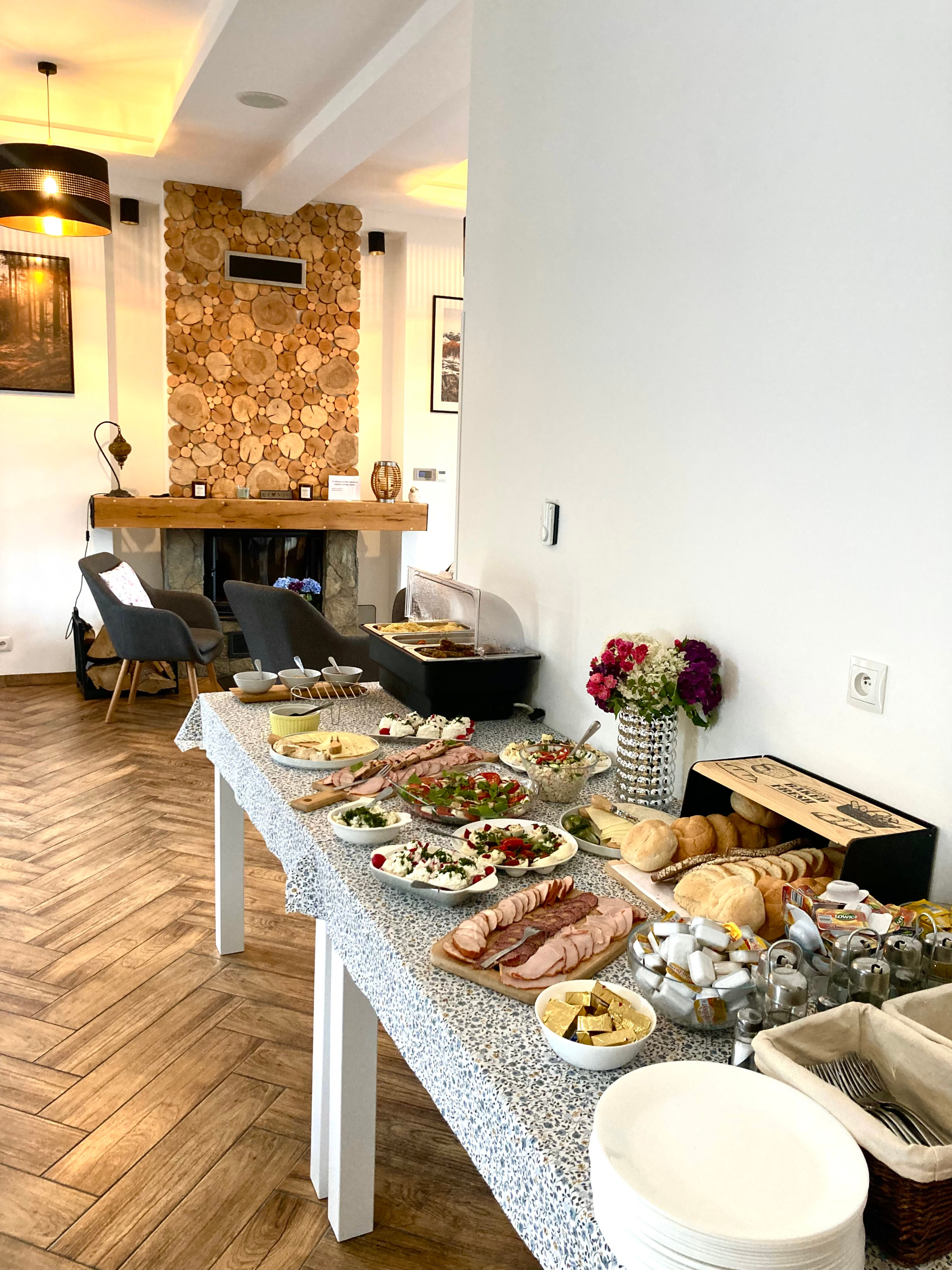 Przestronne wnętrze z widokiem na góry, a dla podniebienia tradycyjna polska kuchnia! Dbamy o to żeby każdy z naszych Gości rozpoczął dzień tym co najlepsze. Śniadania serwujemy w formie szwedzkiego stołu. Na stole znajdziecie Państwo świeże wyciskane soki, owoce i produkty regionalne wyrabiane w tradycyjny sposób, a miłośnicy słodyczy zawsze mogą liczyć na coś słodkiego. Do Państwa dyspozycji jest również bufet kawowy z różnymi rodzajami kawy i herbat.